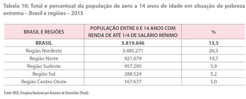 Estudo da Abrinq, que a grande mídia escondeu ou deu pouca atenção, mostra que, em 2015, o Brasil tinha 6 milhões de crianças em estado de pobreza domiciliar extrema.