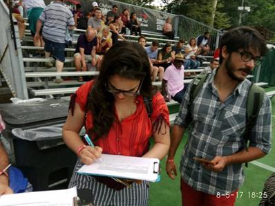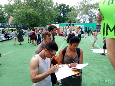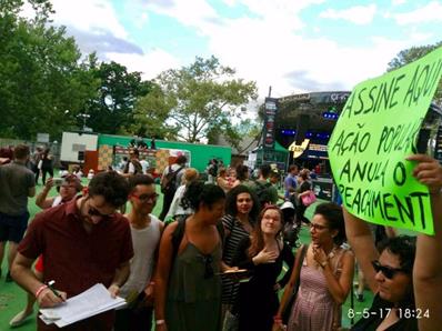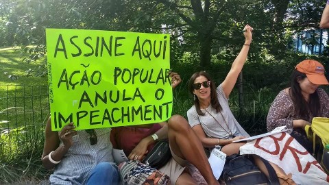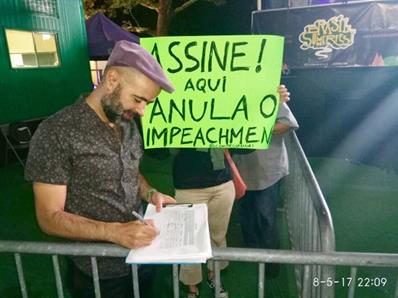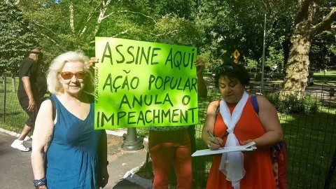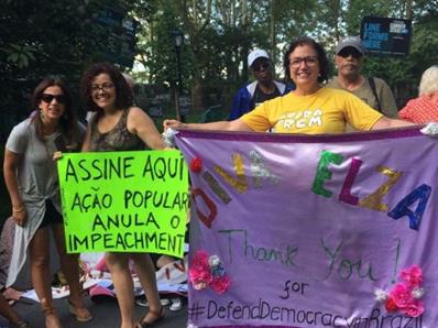 O #DefendDemocracyinBrazil, nascido das lutas contra o golpe de 2016, e o Movimento Nacional pela Anulação do Impeachment, estiveram presentes ao evento, com faixas, cartazes e banca de assinaturas, e receberam apoio de muitos compatriotas.