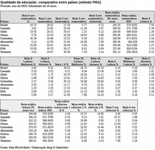 Passei os últimos dias estudando o banco de dados do Banco Mundial, compilando os números do PISA para alguns países selecionados. Mesmo com todos os avanços vividos no período petista, o Brasil permanece na rabeira do mundo em termos de educação. Isso tem um preço político: uma fragilidade enorme da população.