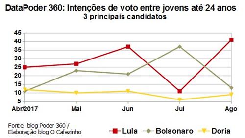 Não sei se dá para confiar nessa enquete. Seguramente o impacto da decisão do Moro em julho foi importante, mas nada explica esse comportamento errático do Lula e do Bolsonaro. Caso a enquete esteja certa, estaríamos diante de uma altíssima volatilidade, tão alta que os votos migram da esquerda à estrema direita. Sei não, acho que a hipótese do erro é a mais cabível.