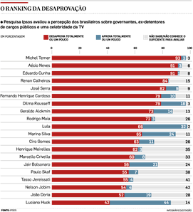 Há o fenômeno Luciano Huck, que não é (ainda) político, e sim apresentador de TV: ele tem uma aprovação alta, de 44%, contra uma rejeição de 42%. Entretanto, Huck não participa do debate político, não externa posições, nunca administrou, nunca legislou.