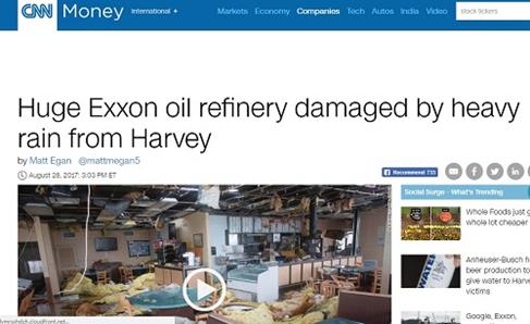 Matéria ridícula, mentirosa, porque não contextualiza. Aquela área em torno do canal de Houston concentra as maiores refinarias de petróleo dos Estados Unidos. Todas, evidentemente, foram afetadas pelo tal furacão. Aliás, todo ano tem furacão por ali e todo ano elas fecham nos dias do furacão, por medida de segurança.