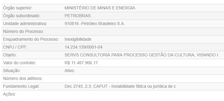 (Print do contrato da empresa no Portal de Transparência da Petrobrás).