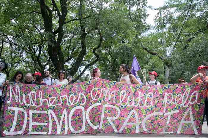 Aula Pública Direito e Democracia foi realizada diante da sede do TRF4, em Porto Alegre | Foto: Maia Rubim/Sul21