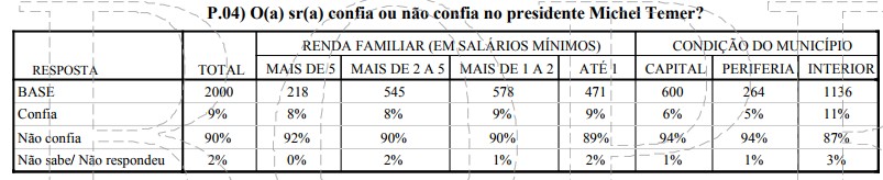 O pior de tudo é 38% delas ainda acreditarem em Temer.