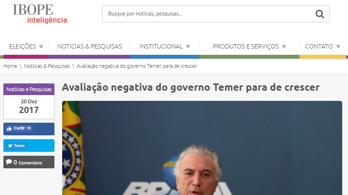 É importante notar que o Ibope, assim como todos os institutos de pesquisa, tem forte tendência a apoiar o golpe e o neoliberalismo, como se pode perceber pelo título dado à matéria escrita pela assessoria de imprensa do Ibope.