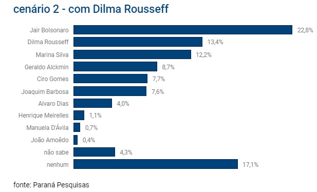 Curiosamente, o instituto fez um cenário 2 com Dilma Rousseff, vítima de um golpe de estado em 2016.