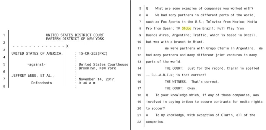 Vejam documentos do Tribunal do Brooklyn no processo do Fifagate