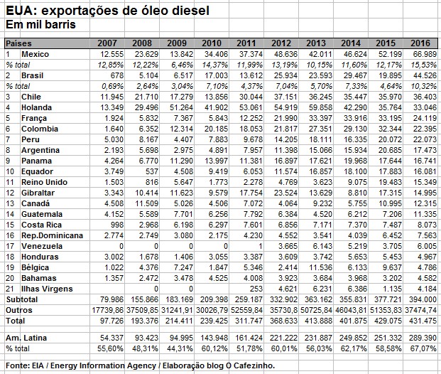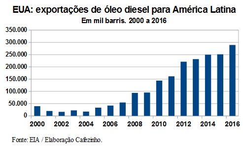 Deu certo no Brasil e em toda a América Latina, cuja participação nas exportações norte-americanas de derivados, que sempre foi grande, em torno em torno de 50% a 60%, cresceu para quase 70% em 2016.