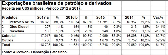 Enquanto a exportação brasileira de petróleo cru aumentou 65% em 2017, sobre o ano anterior, a venda de gasolina ao exterior caiu 20%.