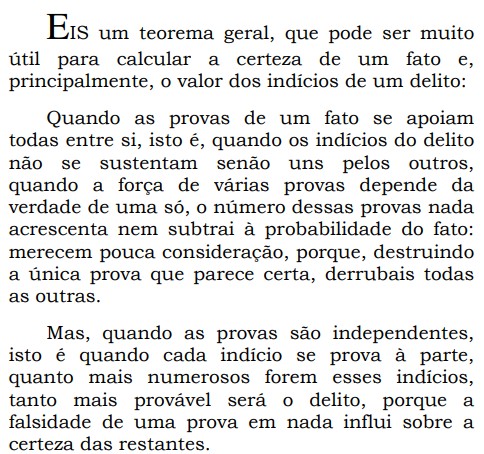 Entretanto, o capítulo que me pareceu mais impressionantemente moderno, e que sobretudo parece falar diretamente aos nobres desembargadores do TRF4, é o intitulado “Indícios e formas de julgamento”.