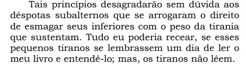 Enquanto lia, já na parte final do texto, antevi também sua mais do que óbvia conclusão acerca dessa obra tão contundente: está bem ali, no templo sagrado do prédio que abriga o TRF-4, sua biblioteca, a resposta desse julgamento, ela repousa esplendidamente nos escritos de Beccaria!… Realmente, e mais do que nunca, e, propositadamente, sobretudo os “nossos” tiranos não lêem…