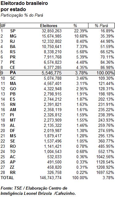 Considerando os votos nulos e indecisos, Lula tem 43% dos votos no Pará, o que corresponde a aproximadamente 2,38 milhões de eleitores.