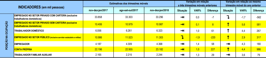 O IBGE acaba de divulgar os últimos números do mercado de trabalho, atualizado até janeiro deste ano.