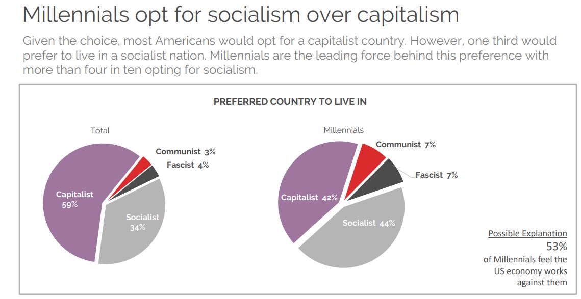 Estamos falando dos Estados Unidos, mais conservadora entre as nações mais desenvolvidas, a meca do capitalismo, a pátria mãe do neoliberalismo. As mesmas pesquisas em países europeus, conforme vamos ver, mostram números ainda mais favoráveis ao socialismo.