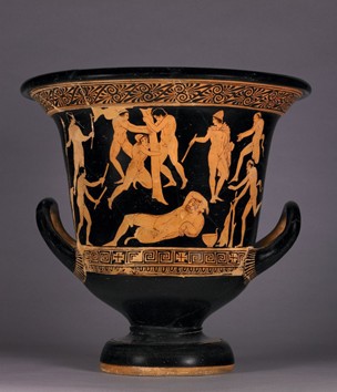 Foto: Vaso grego mostrando Odisseu, o herói humano e falível, e seus companheiros se preparando para juntos cegarem o cíclope Polifemo