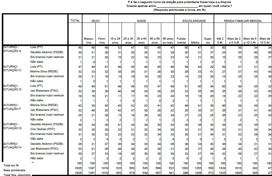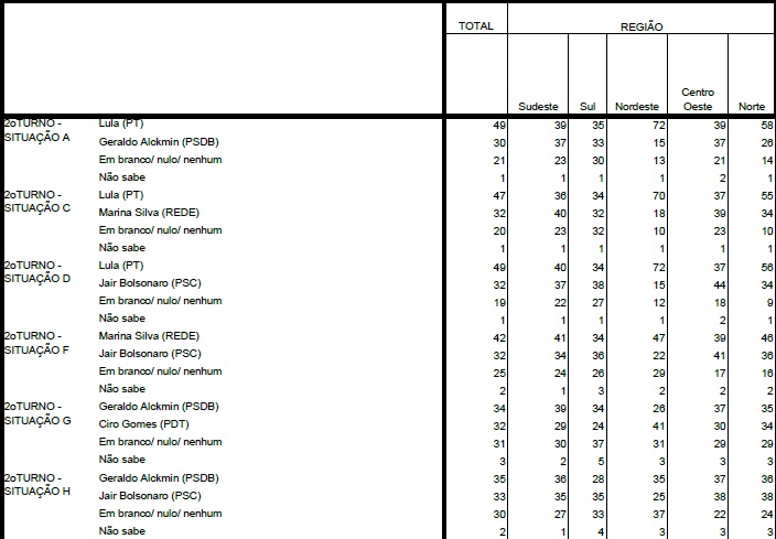 Num eventual segundo turno entre Bolsonaro e Alckmin, o nordeste votaria majoritariamente no primeiro, por 37 X 25. Entre os mais pobres, o placar seria 32 X 28 para Bolsonaro. Esses quatro pontos de vantagem junto à população humilde indica que Bolsonaro pode ganhar a simpatia do povão e levar a presidência da república.