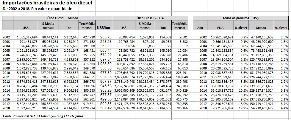 As importações brasileiras de óleo diesel e gasolina, principais combustíveis usados em nossos meios de transporte, nunca foram tão altas, e há muito tempo essas compras não estavam tão concentradas nos EUA.