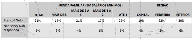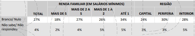 Os nulos e brancos explodem no cenário sem Lula, entre os mais pobres: 34%.