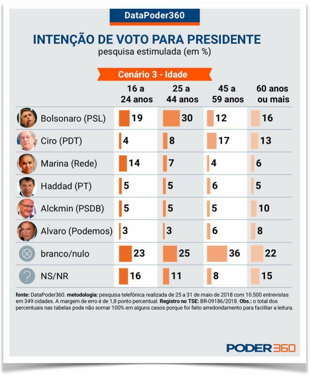 Entre eleitores na faixa etárias dos 45 a 59 anos, todavia, Ciro Gomes tem a melhor pontuação entre os candidatos, com 17%, contra 12% de Bolsonaro.