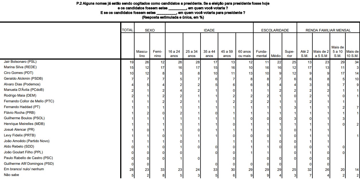 Na estratificação por idade, Manoela tem um bom desempenho de 4% entre jovens até 24 anos, empatando com Ciro e Alckmin, que tem 5% nessa faixa etária.