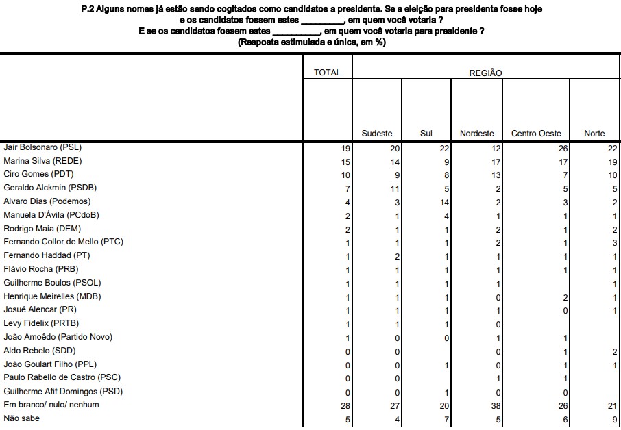 Em cenário sem Lula no último Datafolha, Manuela tem 4% no Sul. Considerando que a região Sul tem 21,4 milhões de votos, esses 4% correspondem a cerca de 860 mil eleitores.