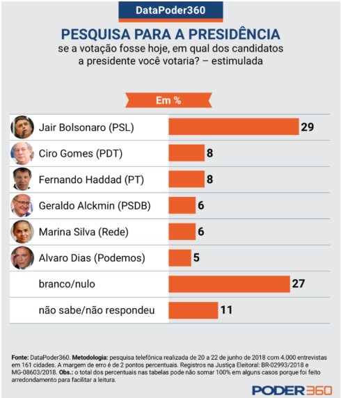 A pesquisa do site Poder 360 é, a meu ver, uma pesquisa de segunda linha, menos confiável. Até porque ela, aparentemente, ainda está ajustando seu método, feito através de pesquisas automáticas por telefone. Mas, por amor ao debate (com dizem os advogados), vamos analisá-la também. Lembrando ao internauta para NÃO – pelo amor de Deus […]