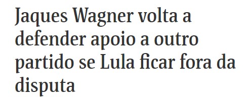 Jaques Wagner vem se manifestando, com frequência, em favor do apoio do PT a um candidato de outro partido. Tanto é que a Folha, ao noticiar a declaração do petista, de hoje, diz que ele “volta” a fazer isso.