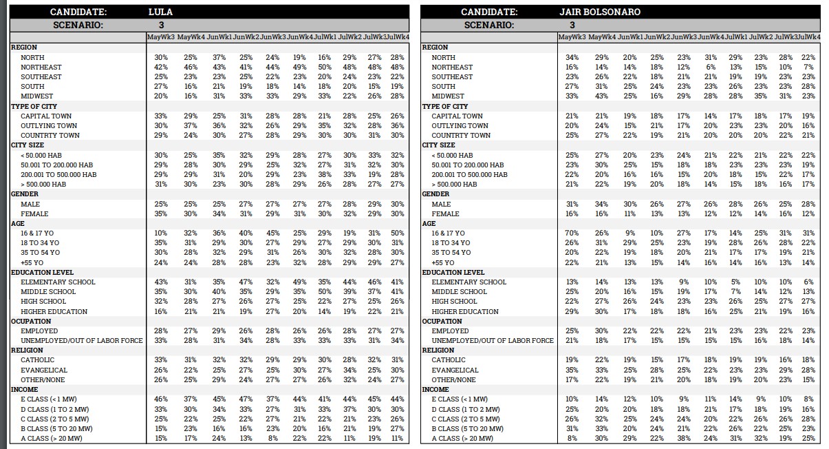 Abaixo, alguns quadros estratificados, dos cenários com Lula: