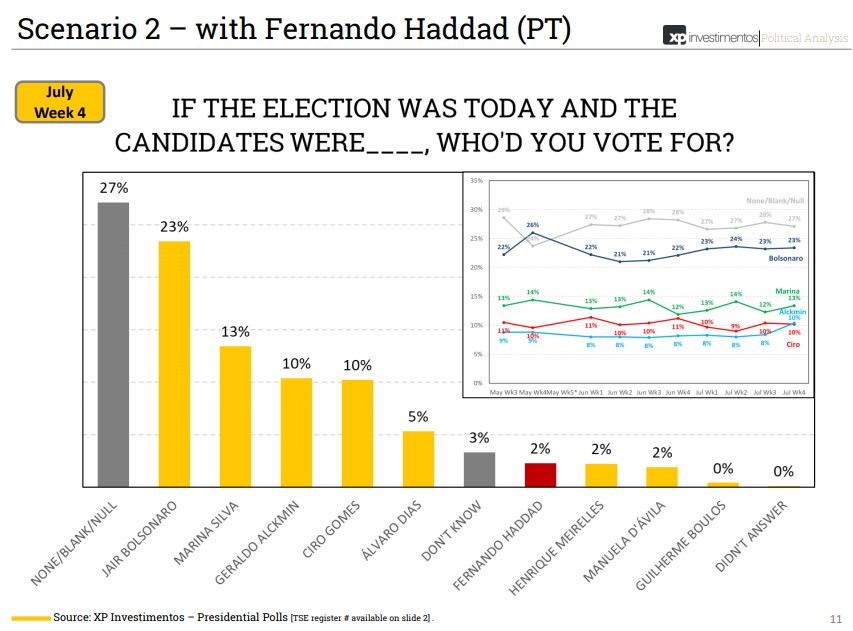 Vox Bolsonaro 12% – XP Bolsonaro 20%.