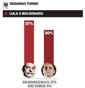 O que me chama a atenção em primeiro lugar é que mais de metade da população se declara pronta a votar em branco, ou no Bolsonaro ou no Lula. O voto em branco é equivalente a renunciar a participar no processo político brasileiro, a se demitir da responsabilidade de determinar o curso do país como se nenhuma questão importasse.