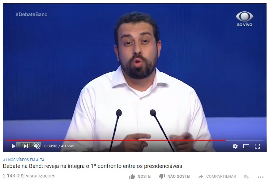 Já o vídeo com o debate “com Lula”, exibido pelo PT, obteve um total de 39 mil visualizações na página do Lula, 60 mil visualizações na página do Brasil 247. No Facebook do Lula, o vídeo teve 817 mil visualizações.