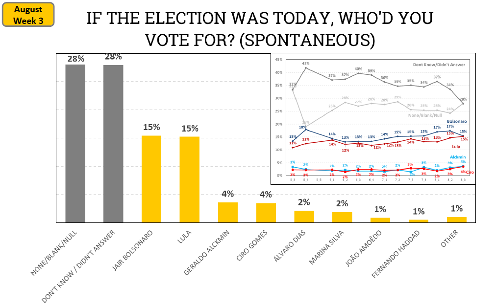 A diferença entre a espontânea e quando os candidatos são apresentados ao entrevistado tá muito grande, em alguns casos chega a 80% de diferença, é quase impossível.