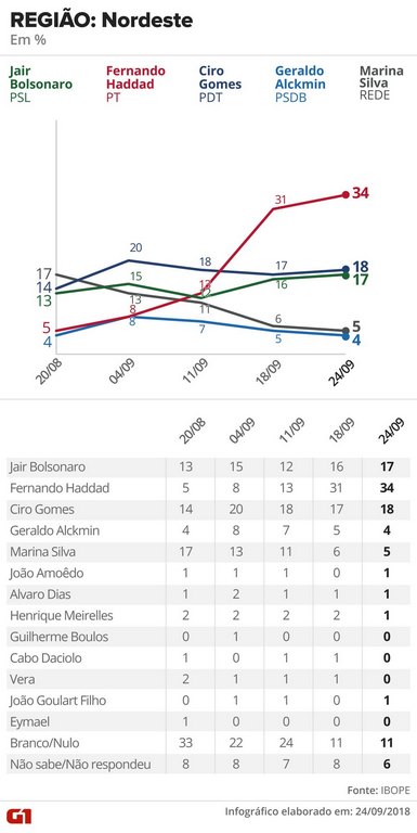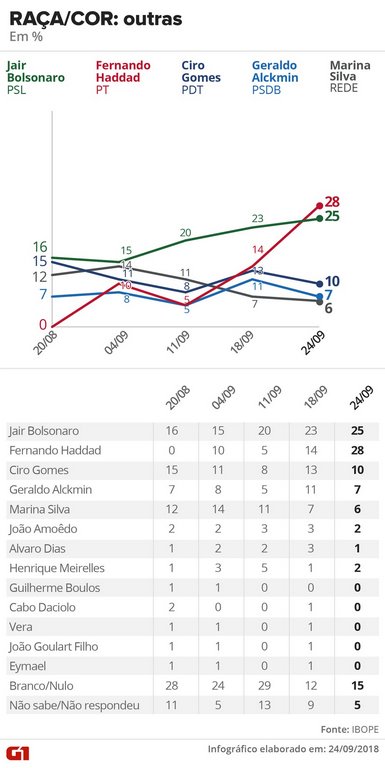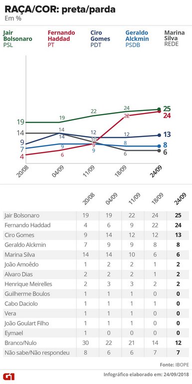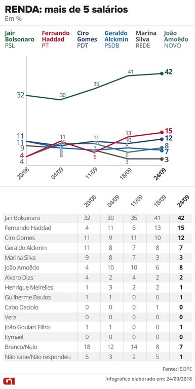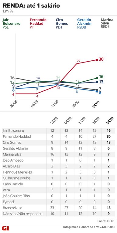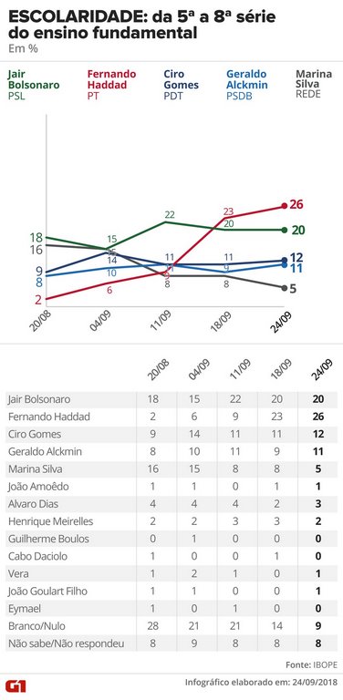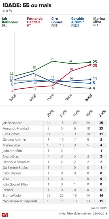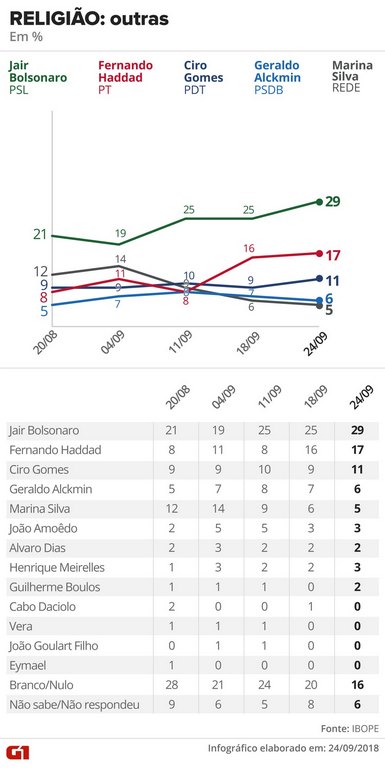 Destaca-se que o ritmo de subida do Haddad deu uma segurada, e que o Bozo já está começando a perder alguns votos ou está estacionado – isso em vários cortes. Qual será a velocidade e intensidade dessa queda, caso a tendência se consolide, é a grande questão no momento…