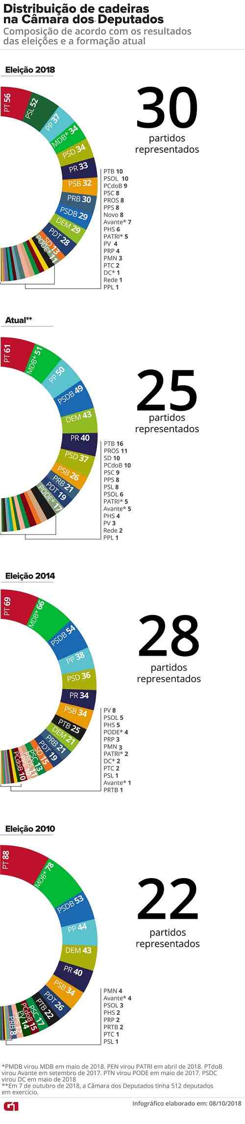 PT ficou com maior bancada, mas elegeu menos deputados que em 2014.