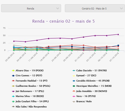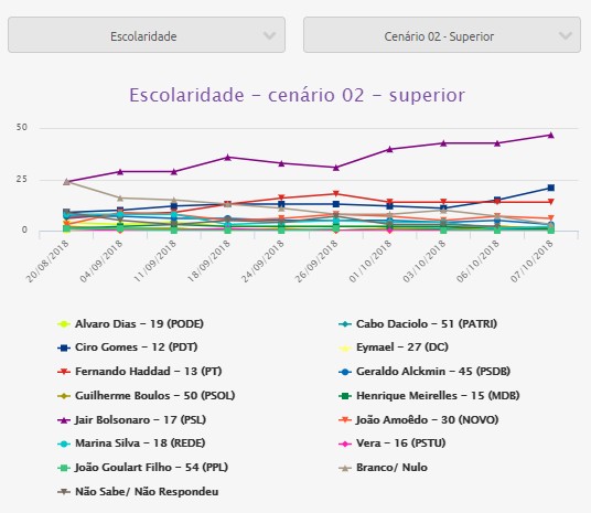 Em momento algum as pesquisas indicavam que seria possível sua ida ao segundo turno.