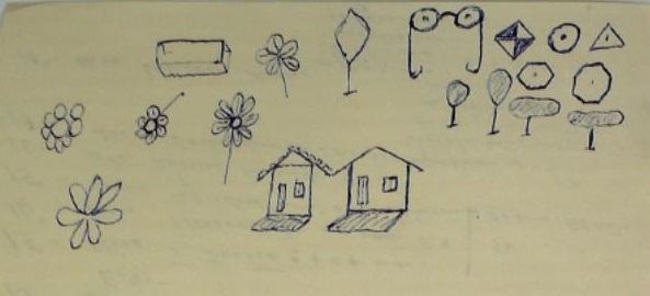 Flores, em torno de uma caixa que bem poderia lembrar um caixão. Casas de mãos dadas, como se buscassem amparo uma na outra. Figuras geométricas – sempre com um ponto no meio – como se fossem alvos. Como saber o que ia na cabeça do futuro ditador?