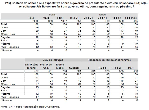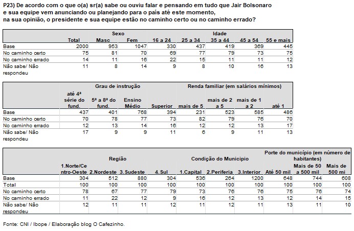 O certo e outras pesquisas confirmam é que a maioria da população não tem uma opinião e está na expectativa e isto dentro daquela porcentagem que votou no bolsonaro porque aqueles que não votaram no bolsonaro já estão com o pé atrás desde o dia da eleição no segundo turno.