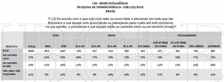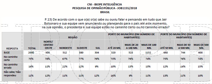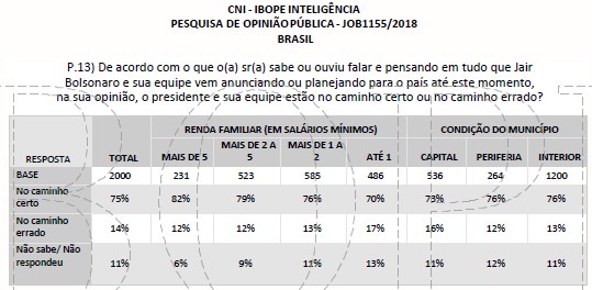 O Ibope Inteligência publicou, em seu site, o relatório completo, com 251 páginas, com a pesquisa sobre as expectativas da população com o governo de Jair Bolsonaro.