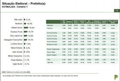 O instituto Paraná Pesquisas divulgou, nos últimos dias, novas sondagens de aprovação para os estados do Ceará e Alagoas, e pesquisas eleitorais para Maceió e Curitiba. Uma pesquisa para Fortaleza já foi divulgada aqui no blog.