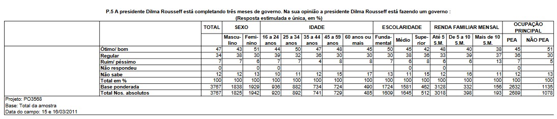 Mas comparemos também com os cem primeiros dias do primeiro mandato de Dilma, quando a presidente petista era muito bem avaliada.