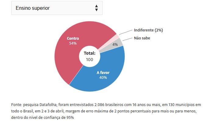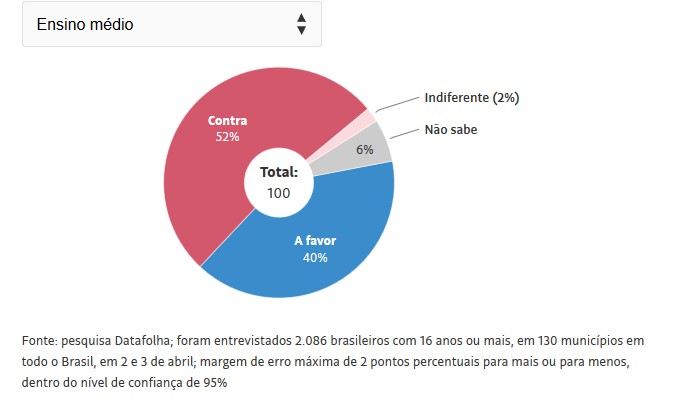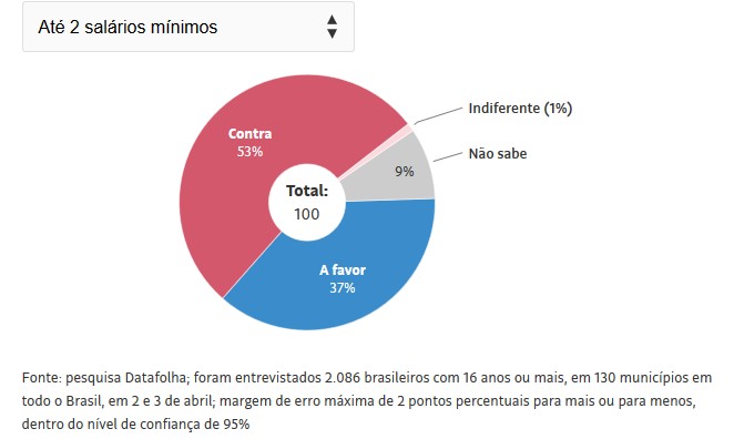 A pesquisa que a Cut fez foi mais precisa. Quando fez perguntas sobre a idade mínima proposta, sobre a necessidade de 40 anos de contribuição para receber a aposentadoria integral após a idade mínima, redução nas pensões, a desaprovação nestes quesitos gira em torno de 80%, o resto se divide em não sabe e aprova. Na pesquisa da cut a pergunta inicial sobre se aprova a reforma também dá desaprovação mas com índice menor do que as perguntas específicas que citei. Indica que parte da população que diz apoiar está mal informada, pois desaprova os termos da reforma. É a futebolizacao que o Alan C disse no seu comentário abaixo.