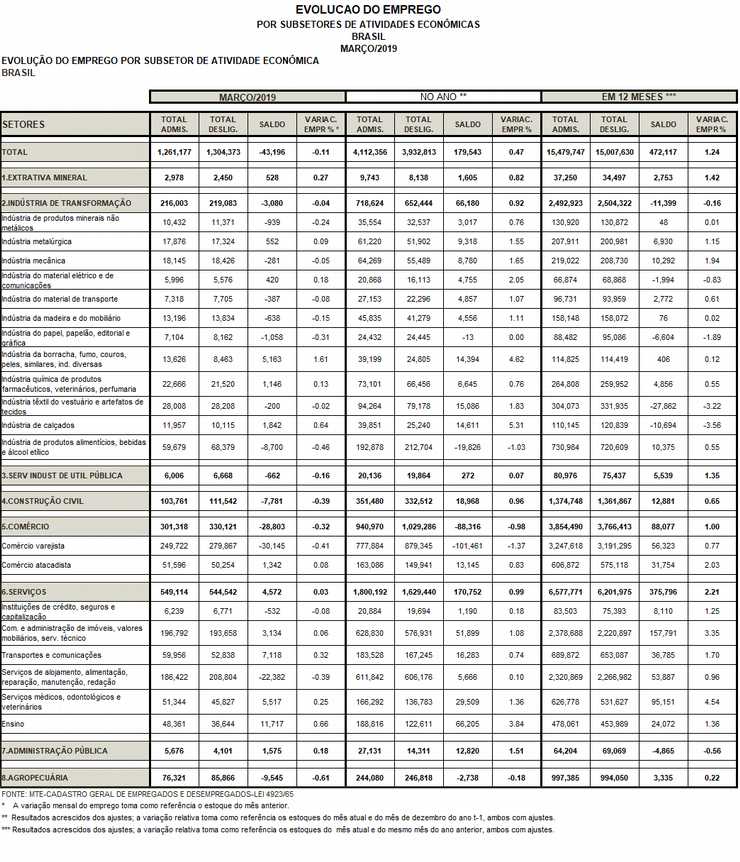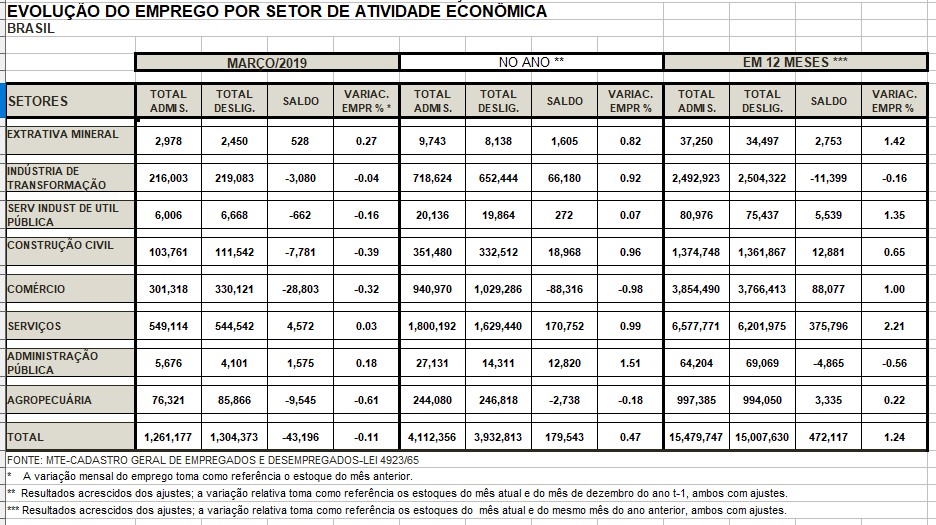 Entramos no site do Caged e separamos algumas tabelas referentes ao emprego em março.