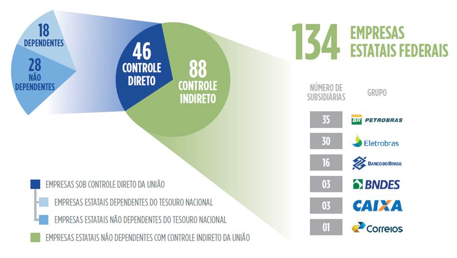 Os dados constam no 9º Boletim das Estatais , divulgado pela Secretaria de Coordenação e Governança das Empresas Estatais nesta terça-feira (30/4). Atualmente, o governo federal tem controle direto e indireto de 134 empresas estatais. Em dezembro de 2017, elas eram 146.