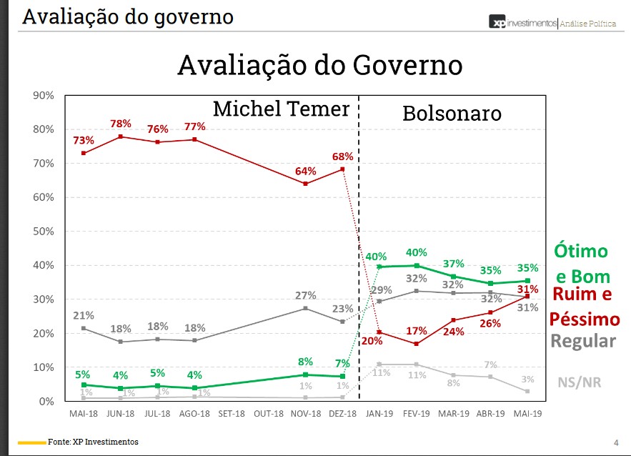 A pesquisa XP mostra que a aprovação do governo Bolsonaro não vai muito bem…
