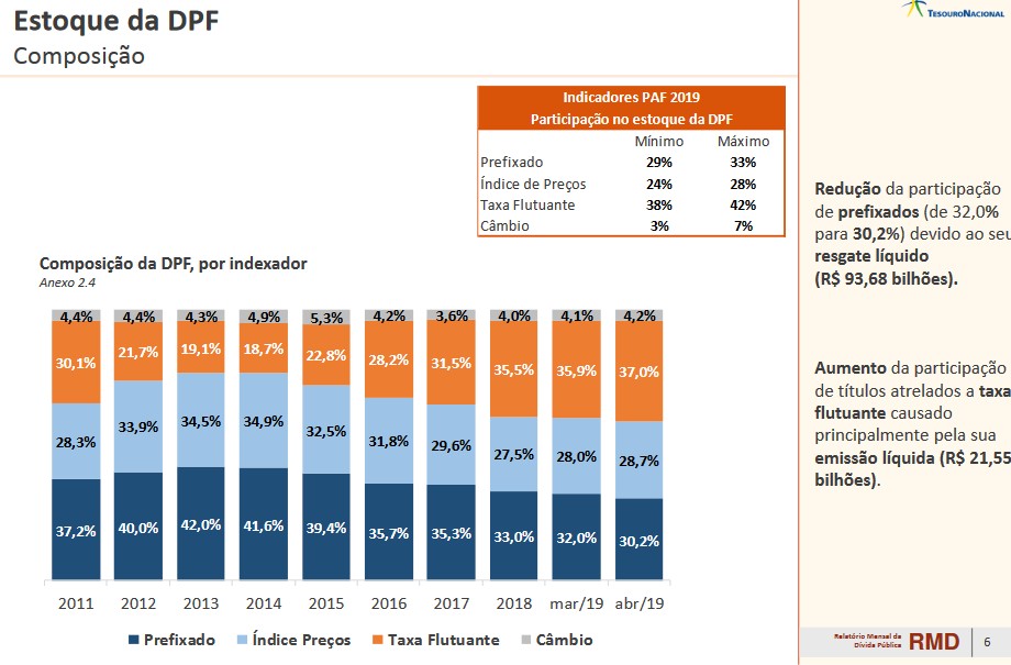 Os relatórios, tabelas e apresentações da Dívida Pública Federal estão disponíveis em http://www.tesouro.fazenda.gov.br/en/relatorio-mensal-da-divida.