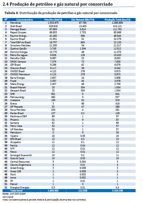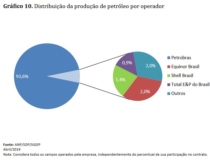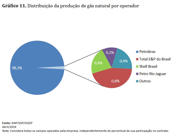 Algumas observações que poderíamos fazer: a Petrobras continua um gigante do setor, exercendo, na prática, um quase monopólio. Ela é responsável por 98% da produção de gás no país, e 94% da produção de petróleo.
