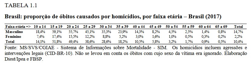 Homem jovem, solteiro, negro, com até sete anos de estudo e que esteja na rua nos meses mais quentes do ano entre 18h e 22h. Este é o perfil dos indivíduos com mais probabilidade de morte violenta intencional no Brasil. Os homicídios respondem por 59,1% dos óbitos de homens entre 15 a 19 anos no país.