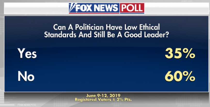 Um político com padrões éticos rebaixado pode ser um bom líder? 60% responderam que não.