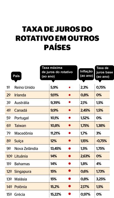 Em abril de 2018, o Conselho Monetário Nacional (CMN) definiu que clientes inadimplentes no rotativo do cartão de crédito passem a pagar a mesma taxa de juros dos consumidores regulares. Essa regra entrou em vigor em junho do ano passado. Mesmo assim, a taxa final cobrada de adimplentes e inadimplentes não será igual porque os bancos podem acrescentar à cobrança os juros pelo atraso e multa.
